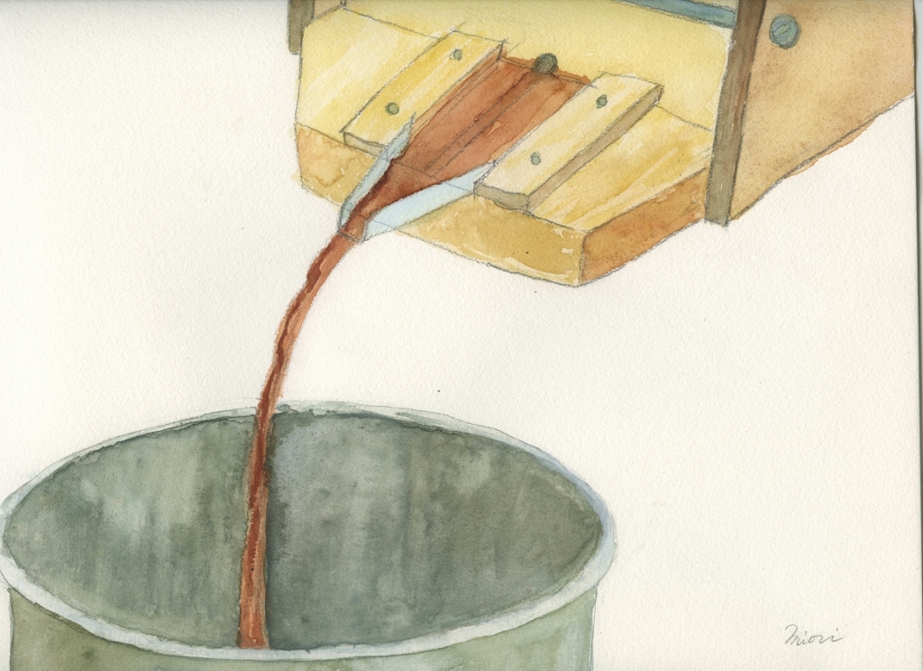 仕込んでから1年ほど先に日程調節をして、もろみのおいてある場所まで絞る道具を持って伺います。