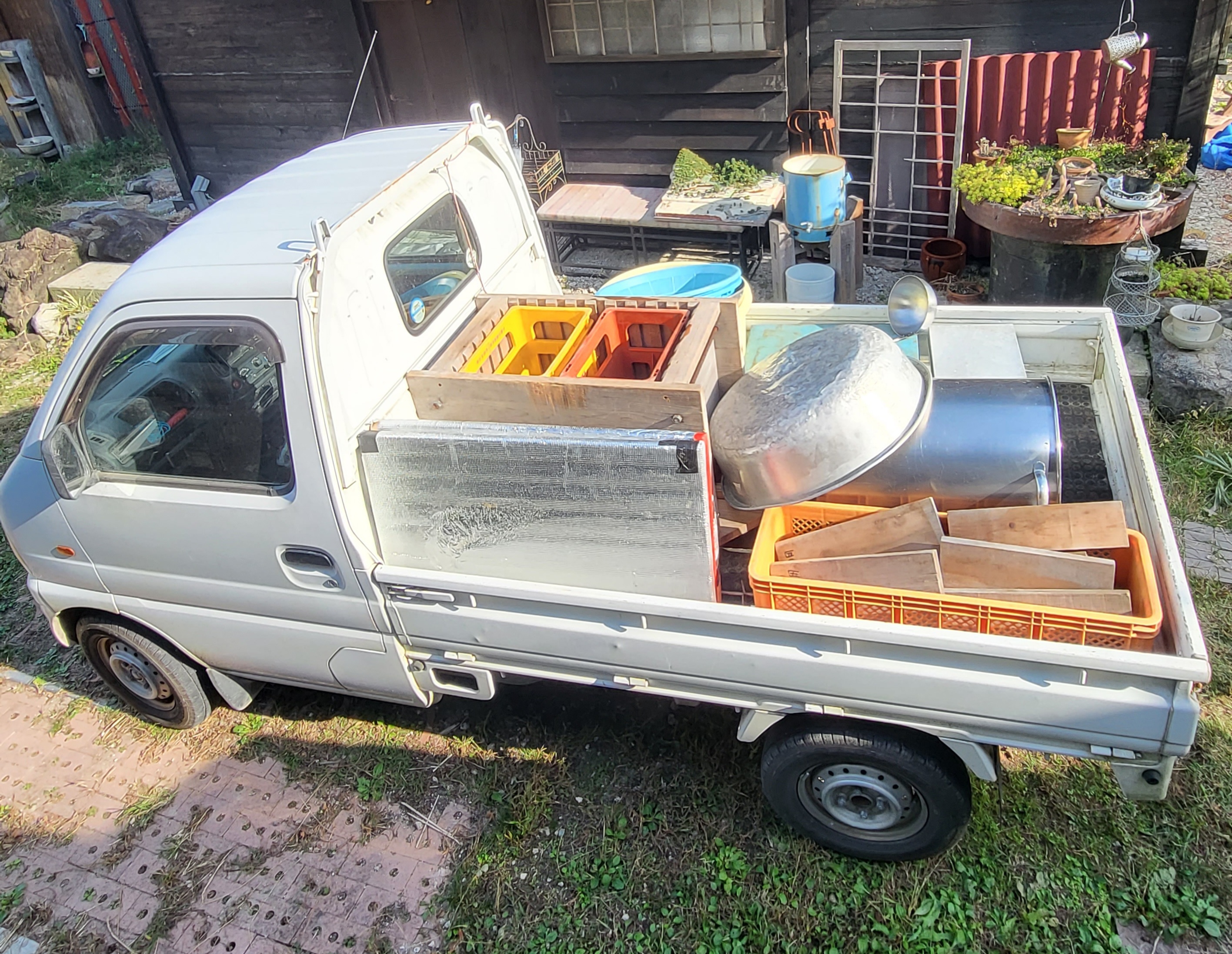 絞りの日は、軽トラに道具を満載して伺います。
